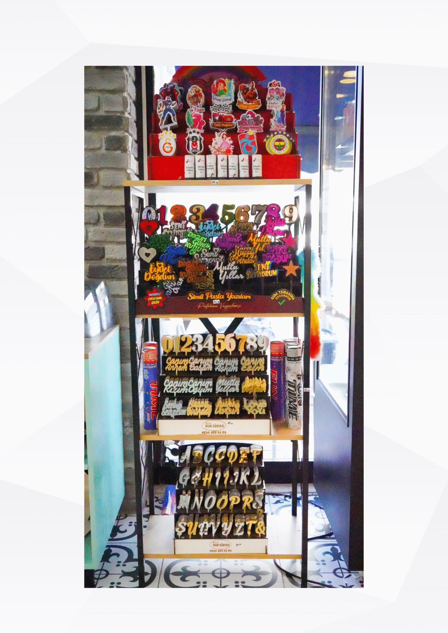 100’den fazla farklı mum ve pasta süsü seçeneğiyle her konseptte doğum günü, kutlama ya da özel gün için size özel çözümler sunar.